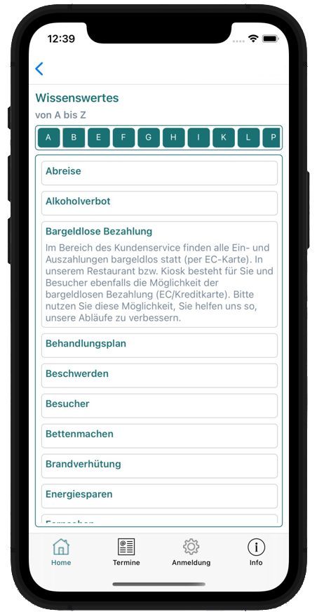 Mittels der Inhaltsverwaltung können Sie Ihren Patienten Informationen bereitstellen, die vor, während und nach dem Aufenthalt wichtig sind.